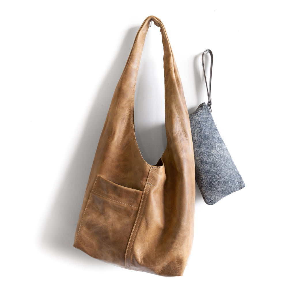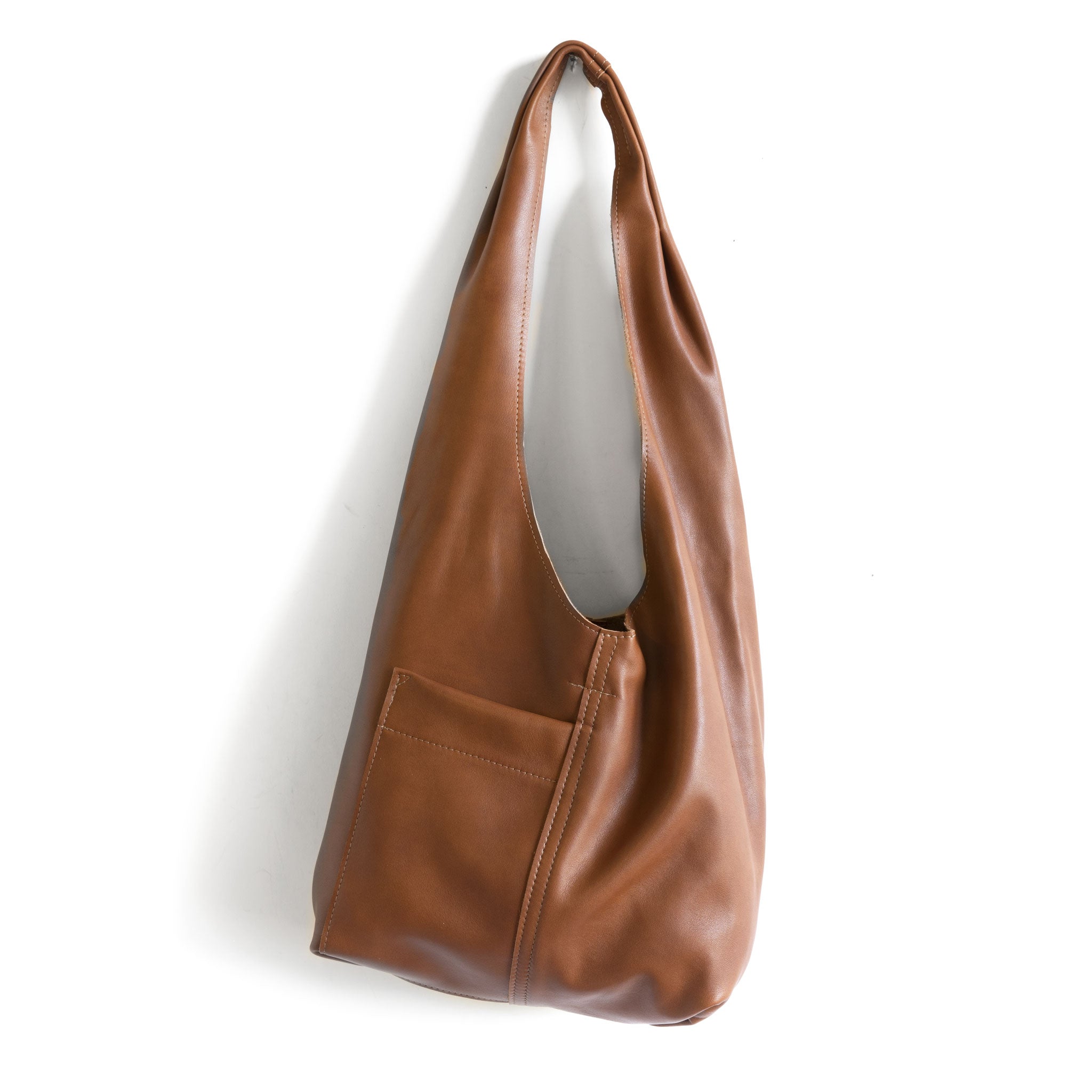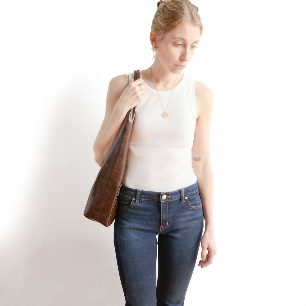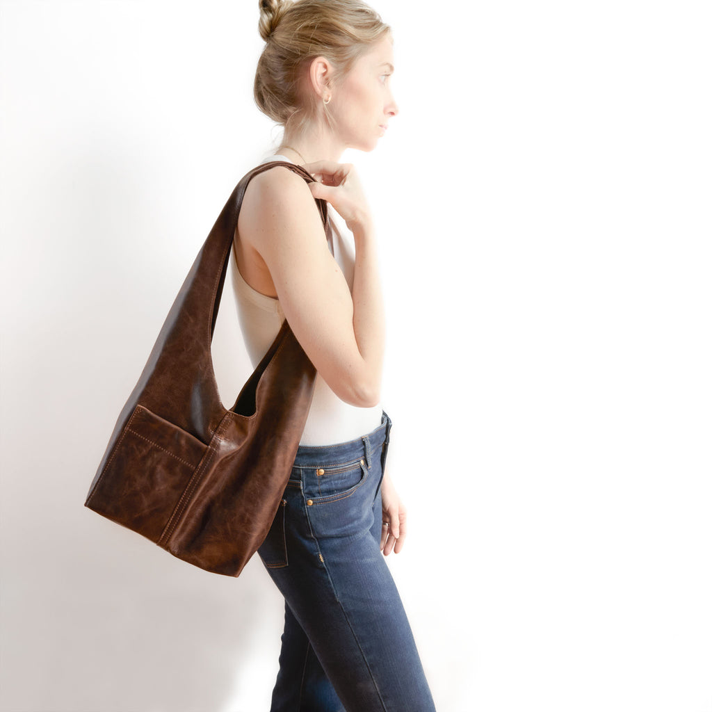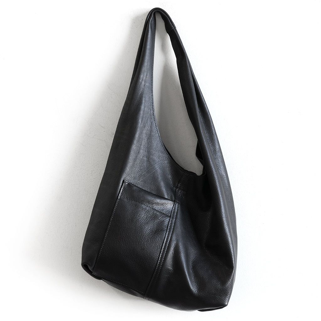This new design is made with one continuous piece of leather. Folded so there is no seam on the soft pleated shoulder strap.