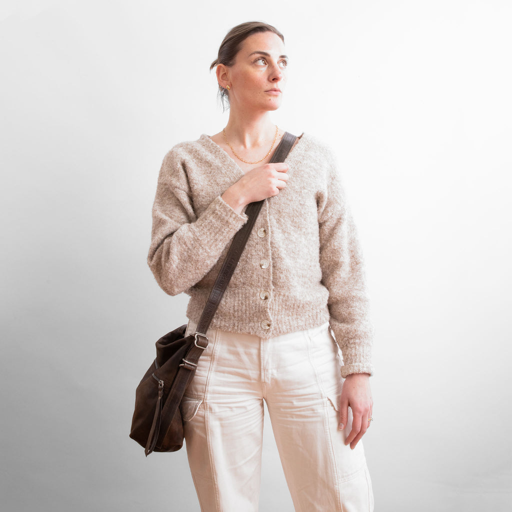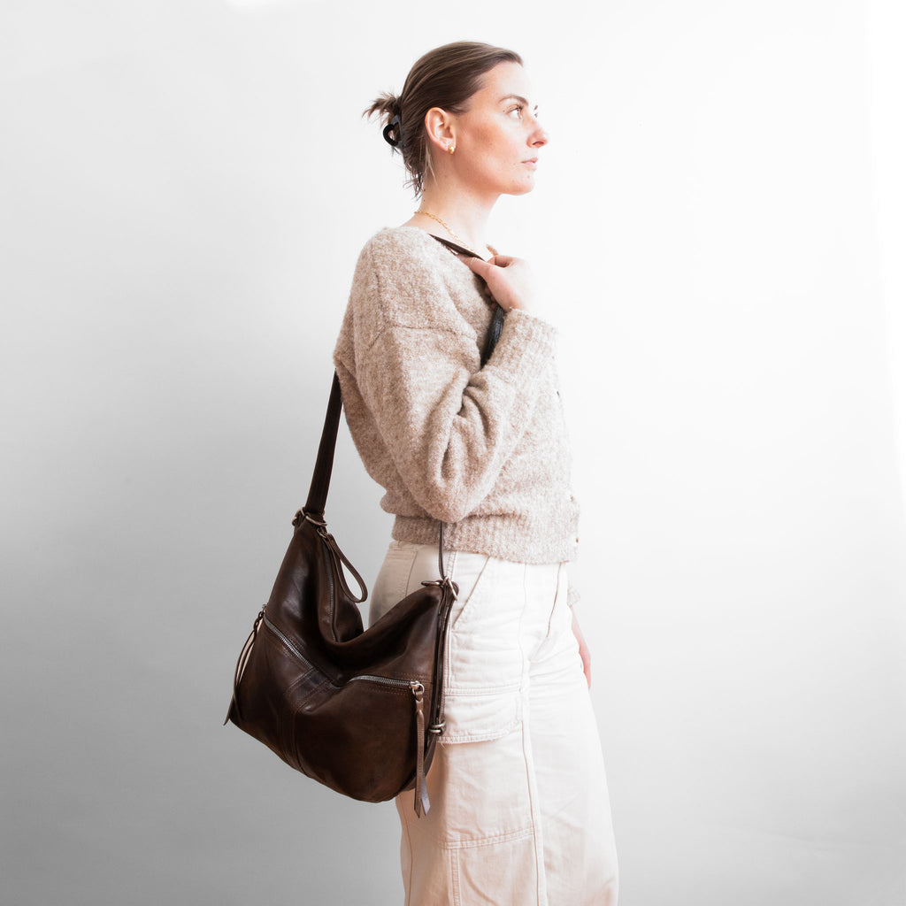 - 14.5" across front zips | hobo pack small used to show comparable size to small city safari on model.