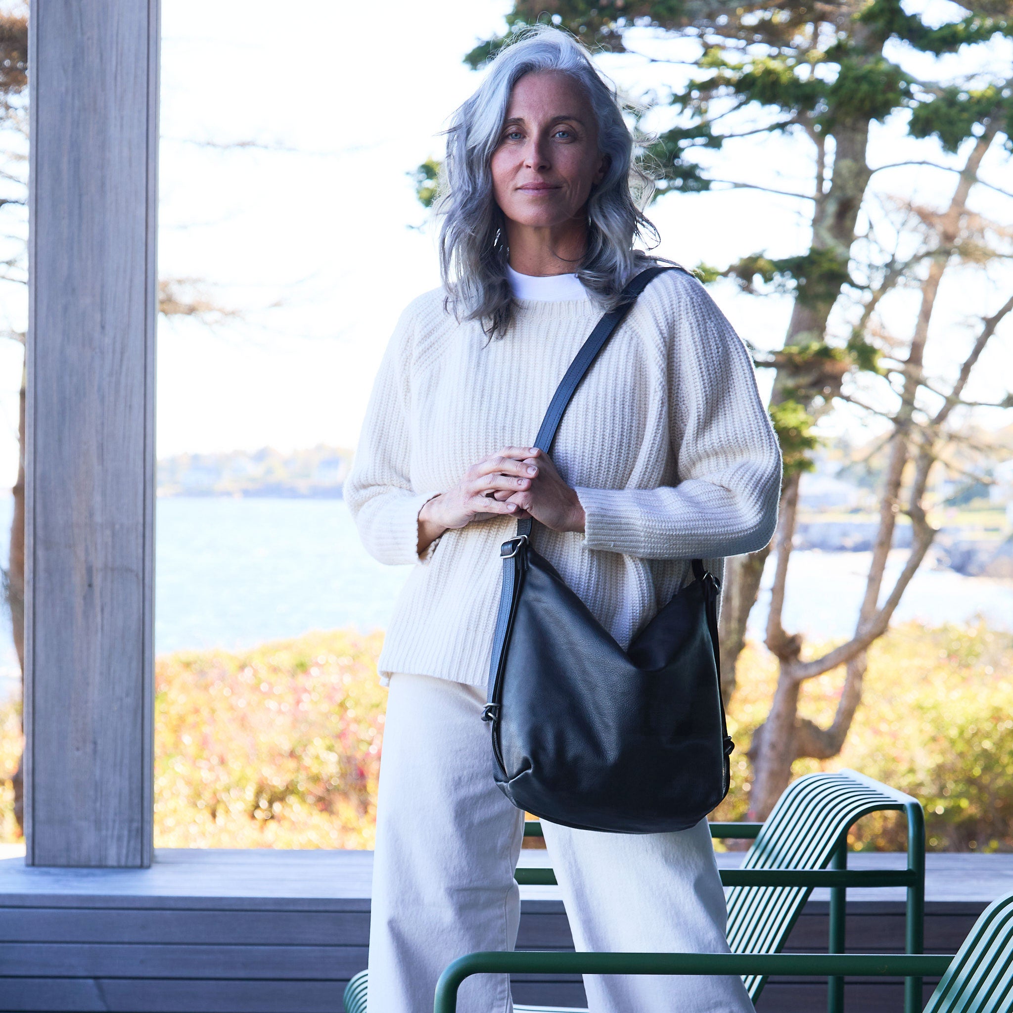 There are many loved bags in the R&T line, but the Hobo Pack ™ is the one that we have sent all over the world, year after year. Always making incremental improvements, including the most recent interior organization update. The Hobo Pack easily adjusts from shoulder length to crossbody length and any length in between. A quick cinch of the strap, and the Hobo is a comfy backpack. Add the optional clip on grab handle/shoulder strap from the menu. The strap adjusts short enough not to need the extra handle, but most like to add it so they can have both options, long & short, at the same time.
