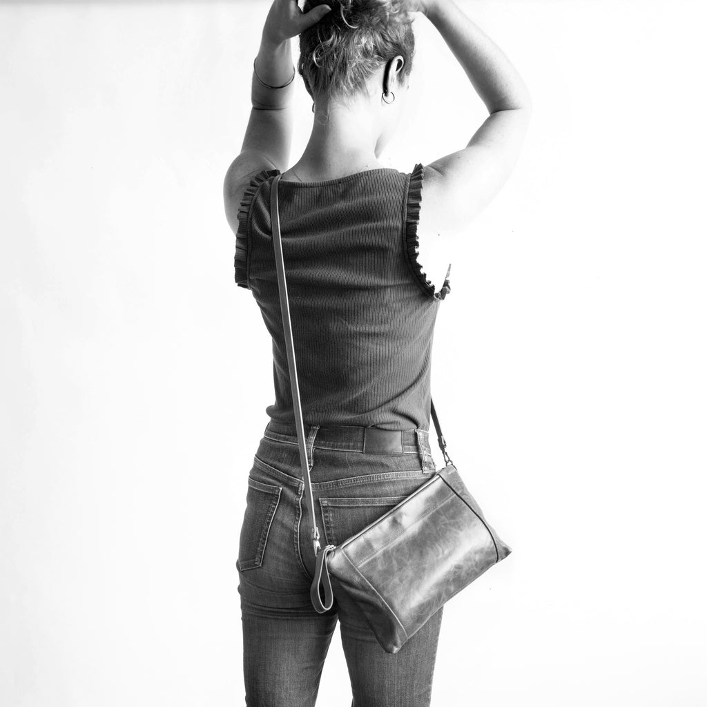 - removable clip-on crossbody strap 49" length