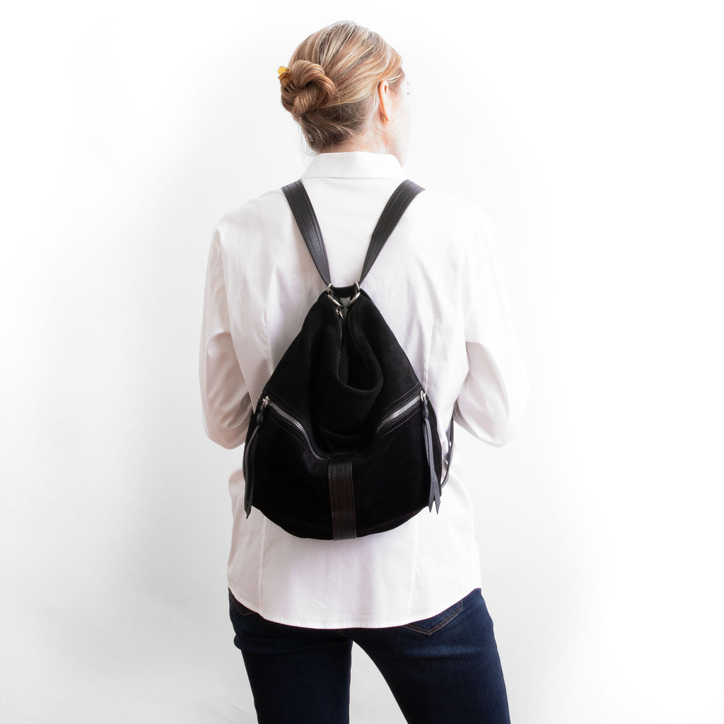 - 14.5" across front zip | hobo pack small used to show comparable size to small city safari on model.
