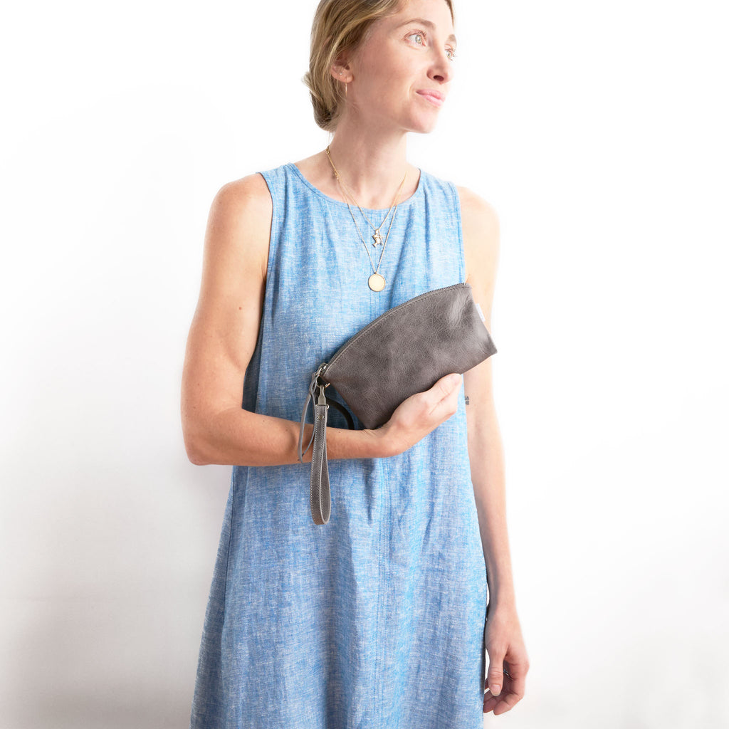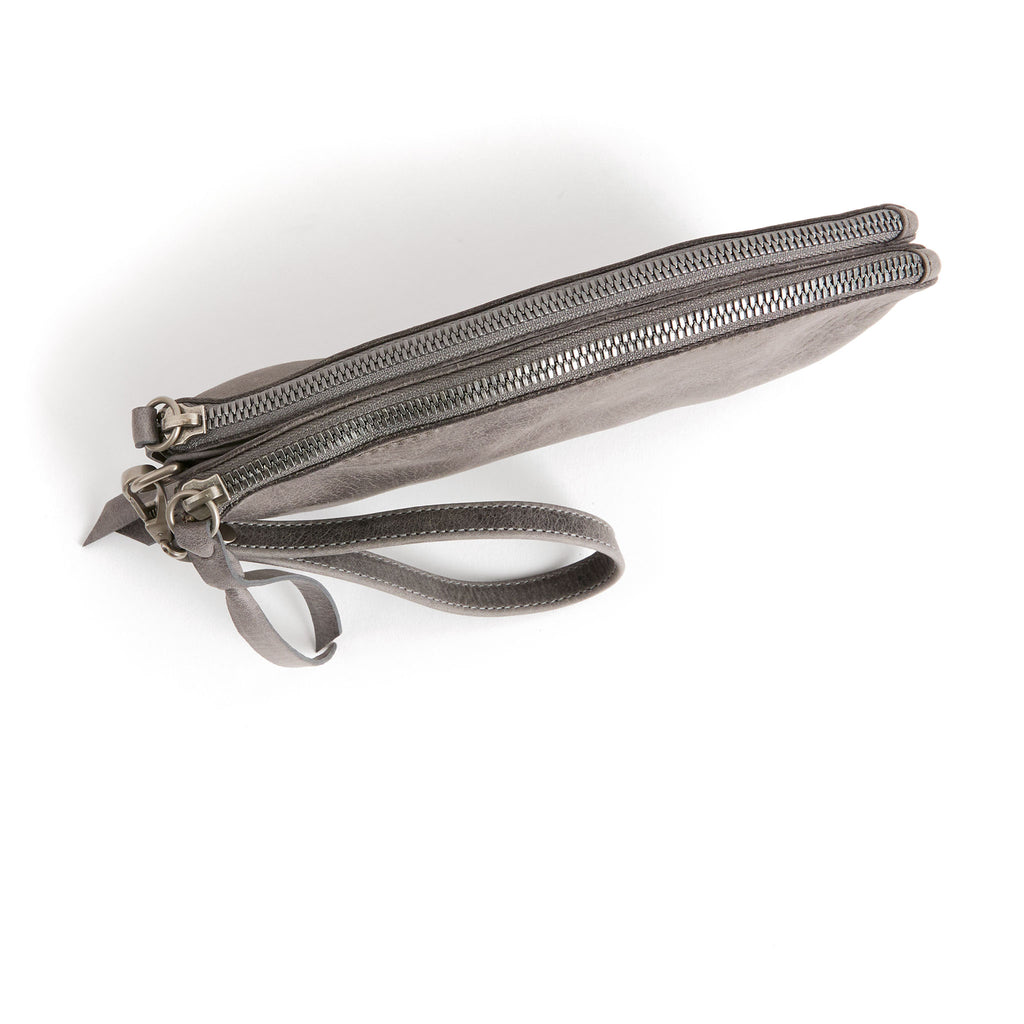 twin clutch in milano black, showcasing interior compartments with martinique token