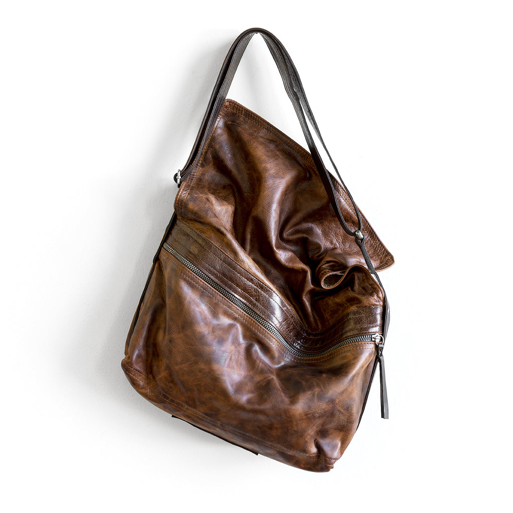 zip top messenger in fuentes, showcasing exterior zippered back pocket