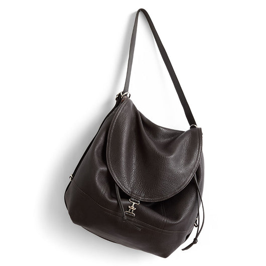Napa dark brown lambskin is lightweight with a semi-matte finish and a lightly pebbled texture.