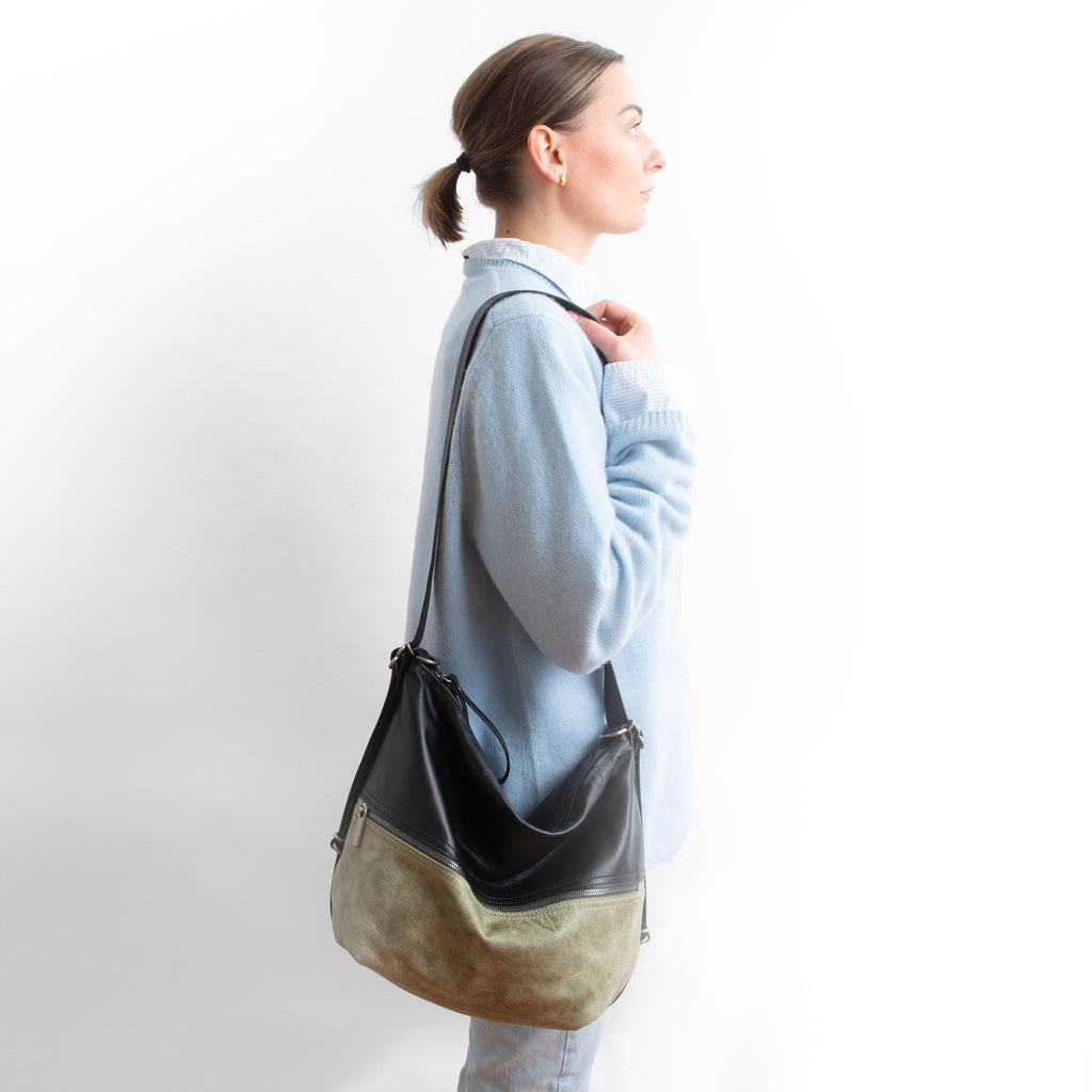 - 14.5" across front zips | hobo pack small used to show comparable size to small city safari on model.