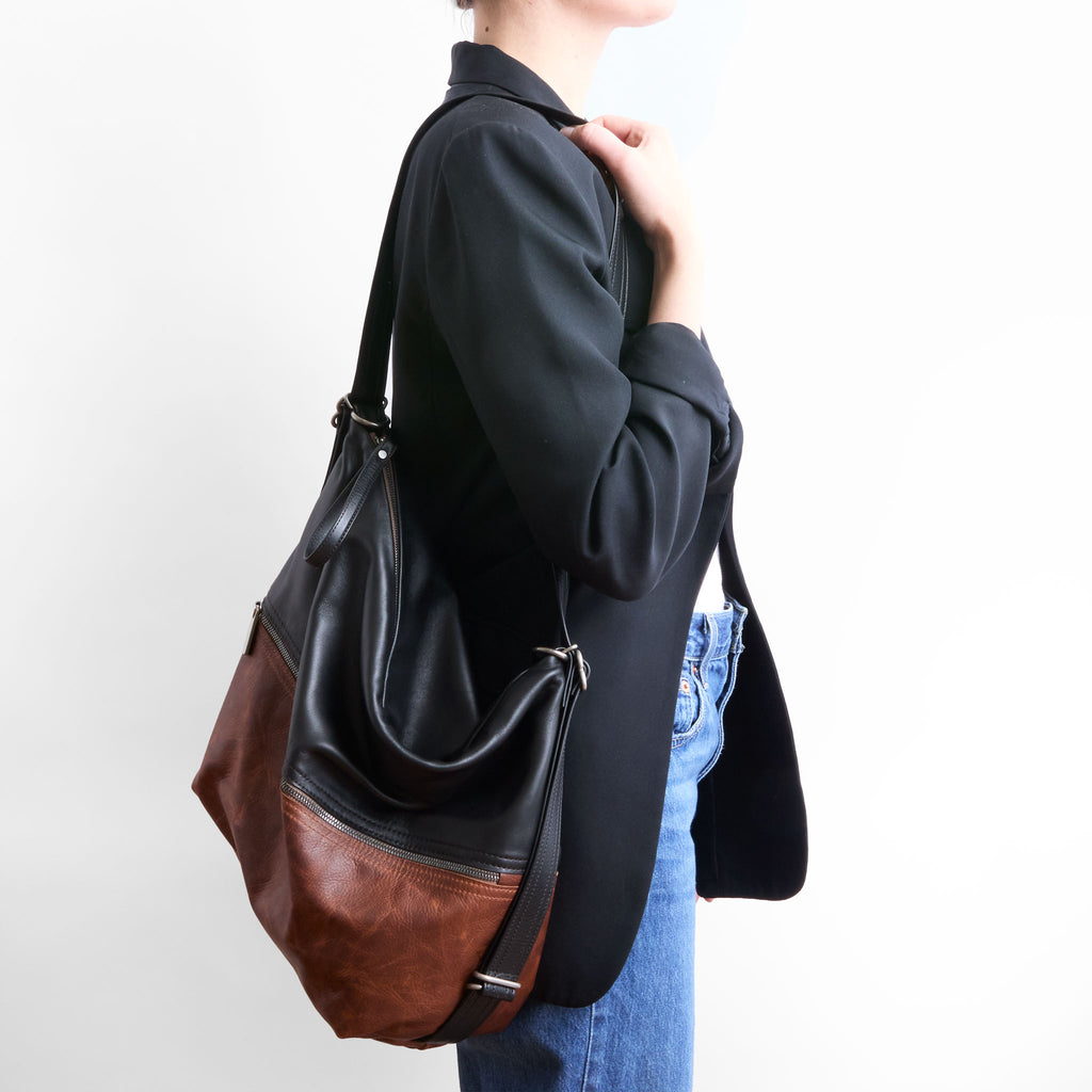 city single zip large with fuentes base and plonge black top, showcasing interior cocoa lining