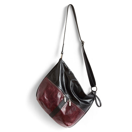 pomegranate with pure black base, mica graphite trim, and peony zipper