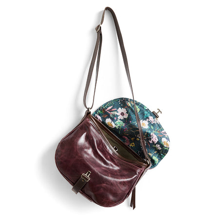 dustressed saddle with distressed espresso and hibiscus details