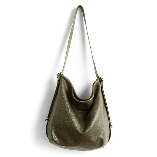 Napa olive lambskin is lightweight with a semi-matte finish and a lightly pebbled texture.