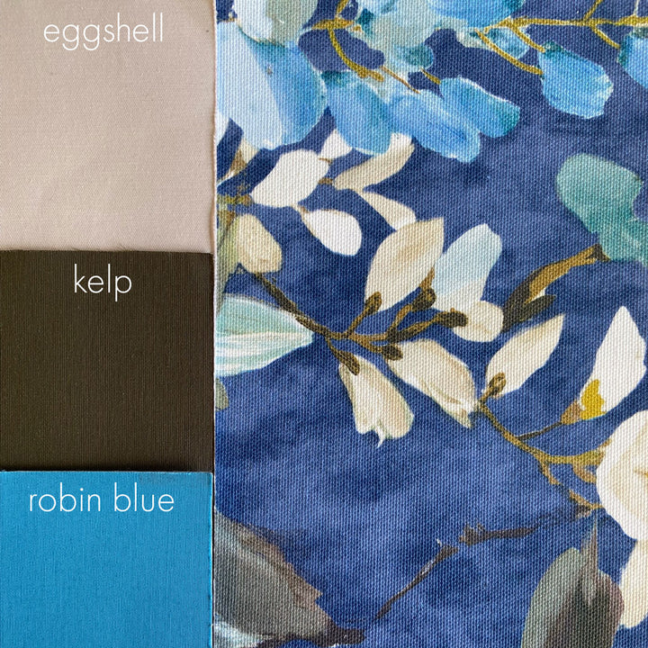 Suggested textile pairing | eggshell, robin blue, acadia, oslo, canada blue, kelp